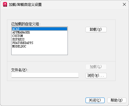 显示“选择菜单文件”对话框(标准文件选择对话框),从中可以选择要加载的菜单文件。