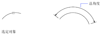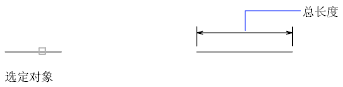 通过指定从固定端点测量的总长度的绝对值来设定选定对象的长度。“全部”选项也按照指定的总角度设置选定圆弧的包含角。
