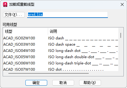 加载线型库 (LIN) 文件中已定义的线型。