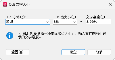 将 OLE 对象的大小恢复至其插入图形时的大小。