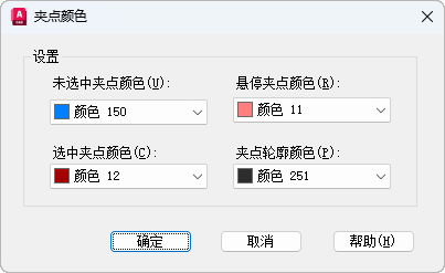 OPTIONS(命令) 查找:“选择”选项卡 > “夹点颜色”