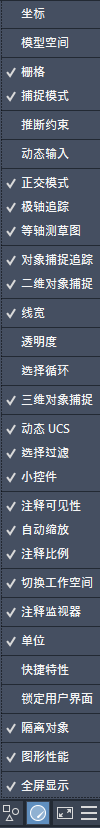 可以通过状态栏快速访问影响绘图环境的工具。