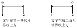 当文字在尺寸界线内时,文字与尺寸线对齐。当文字在尺寸界线外时,文字水平排列。