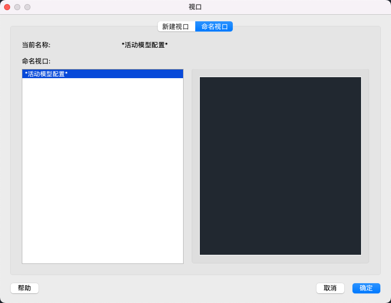 显示选定视口配置的预览图像,以及在配置中被分配到每个单独视口的缺省视图。