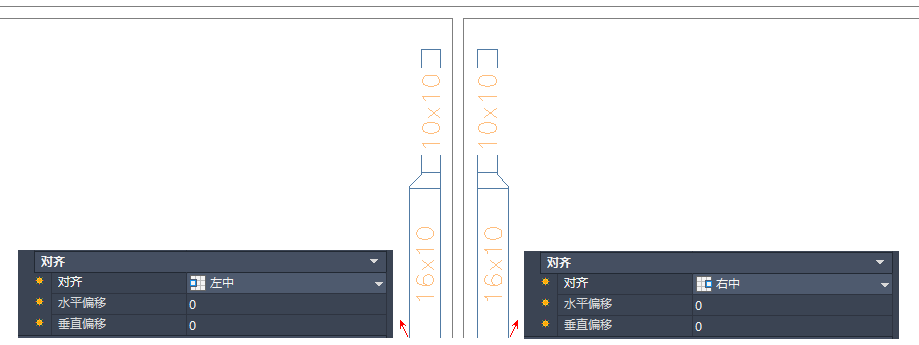 “特性”选项板上的对齐