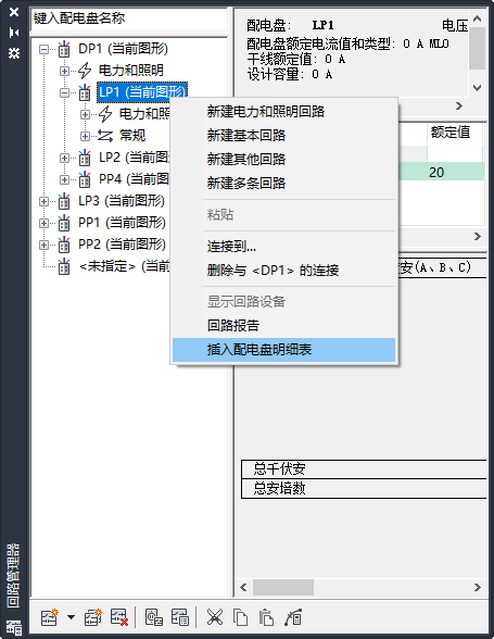 使用电路管理器在当前图形中生成配电盘明细表