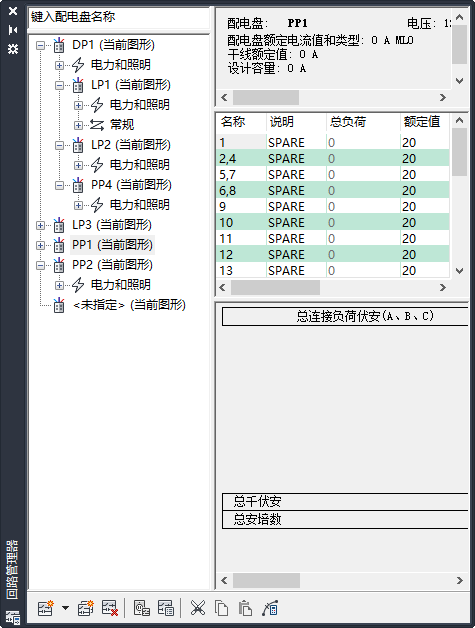 在链接配电盘之后,可使用电路管理器将每种负荷类别的配电盘需求和所连接的总负荷从一个配电盘传输到另一个配电盘。