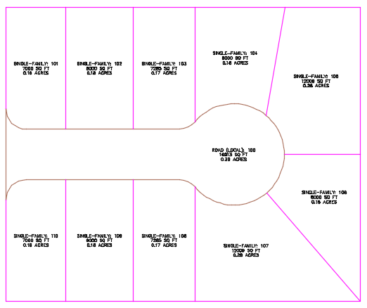 将显示地块创建参数和建议的解决方案的预览图形。显示的解决方案沿该参照点转动地块线。建议的解决方案将封闭满足本练习开始时所指定的地块创建参数的区域。