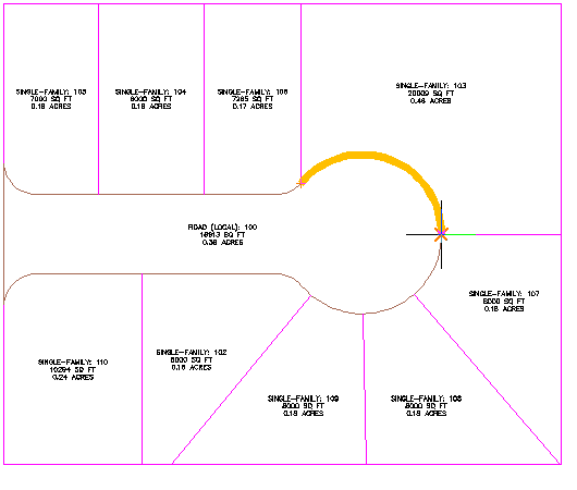 请注意,当您移动光标指定终点时,将使用黄线显示建议的临街面。