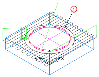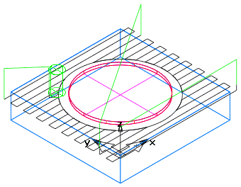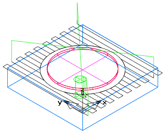 对于凸台特征,刀具路径在毛坯中平行放置,并且根据凸台的边界剪裁。