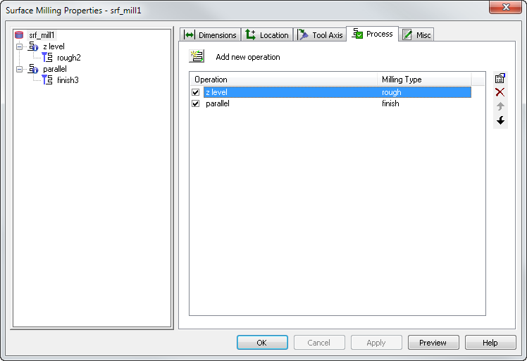 “处理”选项卡按执行顺序列出了包括用于铣削特征的操作。您可以通过取消选择操作来将其删除。这使您可以自定义操作,然后将其关闭以在执行后续操作时减少屏幕的杂乱感。