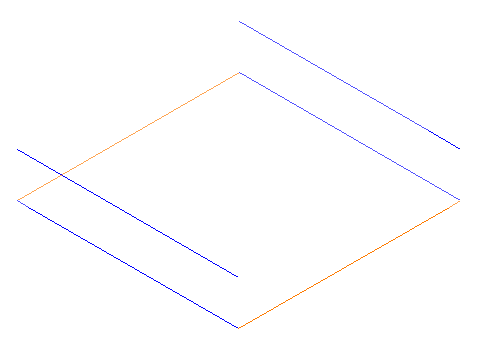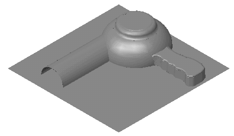 吹风机在模型中使用直纹曲面作为分模面。两条曲线(本例中为直线)沿毛坯的对侧绘制,然后沿 Z 轴向下平移到合适的深度。