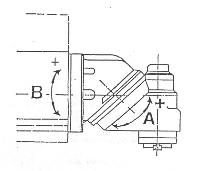 A 和 45 度角 B 倾斜主轴头 - 绕 X 轴旋转,然后绕 Y 轴旋转并且主轴头倾斜 45 度角。也称为休伦主轴头。