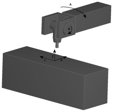 A 和 B 倾斜主轴头 - 使用工作台绕 X 轴旋转,然后在主轴头中绕 Y 轴旋转。