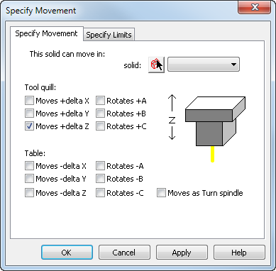 构建 MD 文件的第二阶段是使用“指定移动形式”对话框设置哪些实体在哪些轴中操作。您可以为所有类型的机床定义旋转和线性轴移动,从简单的 3 轴铣床到全车/铣床。