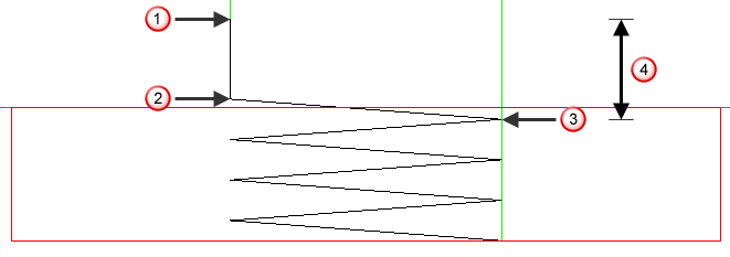 例如,如果“进给 %”属性为 2000 MMPM 并且将“下切速率 %”设为 50,将“第一下切进给 %”设为 20,则生成的第一个下切移动的进给率为 200 MMPM。将“第一下切进给 %”设为一个较慢的速率,可以防止刀具被材料曲面的硬化外壳所损坏。