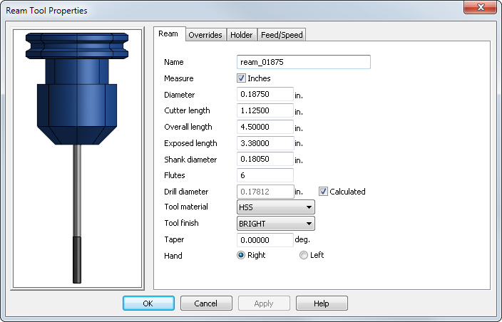 测量 - 指示用于报告刀具尺寸的单位。选择“英寸”可获得英寸单位,将其取消选中可获得毫米。