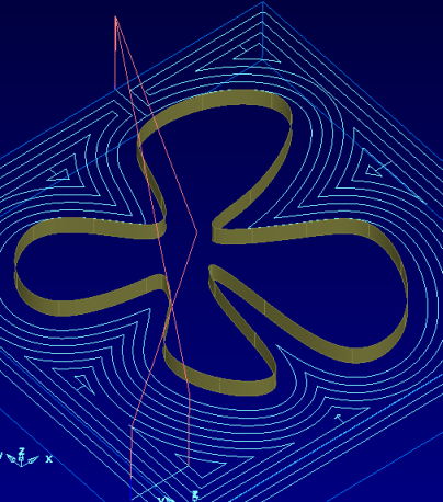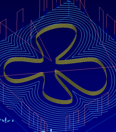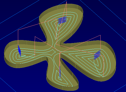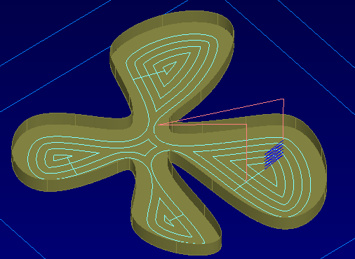 对于型腔特征,刀具路径笔直槽将沿着偏移切削,而不是沿着一条直线切削。下切次数比使用传统刀具路径时少。