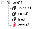 如果实体设计特征与实体断开,一个问号图标将显示在零件查看的图标上方,如图所示。