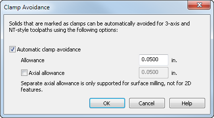 自动夹具避让 - 选择此选项可自动避免实体标记为夹具。若要将实体标记为夹具,请在“零件查看”中的实体名称上单击鼠标右键,然后在关联菜单中选择“使用实体为夹具”。