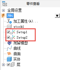 “设置 1”是车削设置,“设置 2”是铣削设置。