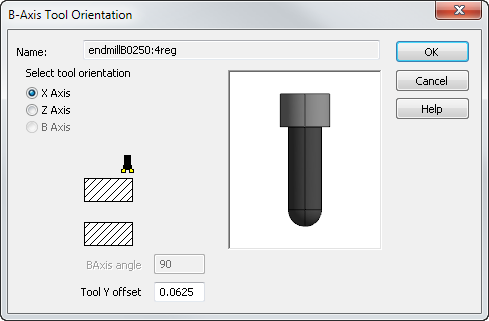 选择工具方向 - 选择是否将刀具方向与“X 轴”、“Y 轴”或“B 轴”对齐。
