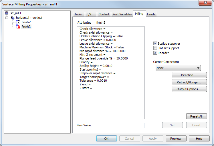 公差 - 该属性用于控制刀具路径跟随曲面的精确程度。如果零件显示为有镶嵌面,请将公差设置为较小的值。