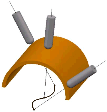 通过“刀轴”,可以定义刀具方向。默认值为“垂直”,用于标准 3 轴加工。但是,也可以是连续改变的方向,以用于所谓的 5 轴同时加工。
