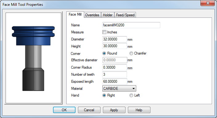 测量 - 指示用于报告刀具尺寸的单位。选择“英寸”可获得英寸单位,将其取消选中可获得毫米。