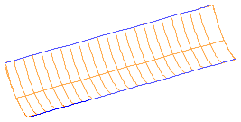 - FeatureCAM 会通过将每个圆倒角的轨道曲线边界与其他圆倒角的轨道曲线相交,尝试跨三个或四个曲面查找闭合环。下图显示了轨道曲线。