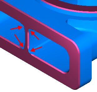在以下示例中,带有平倒角的面铣刀太大,无法切削零件侧面上的平倒角: