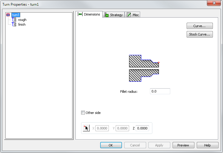 “毛坯曲线”按钮 - 可以通过使用毛坯曲线限制粗加工的范围。单击“毛坯曲线”按钮并在“选择毛坯曲线”对话框中选择或拾取曲线。例如,如果从铸件开始加工,则该操作将很有用。