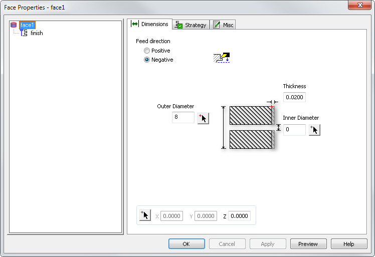 进给方向 - 如果要在 +X 方向上切削,请选择“正”;如果要在 -X 方向上切削,请选择“负”。