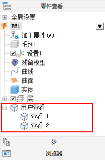 在“零件查看”面板中双击用户查看,以在图形窗口中使用该查看。