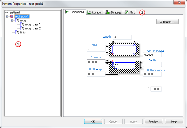 树视图显示了特征的操作和路径的列表。对话框中显示的选项卡会随着在树视图中选择的层而发生变化。