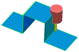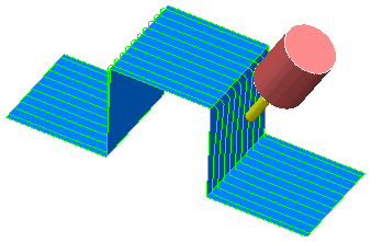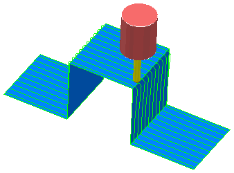 下面这个简单的示例使用跨一个阶梯的 X 轴平行刀具路径来展示避免碰撞的效果。如果在此刀具路径之上创建简单平行刀具路径,则爬上阶梯或从阶梯上下来时,刀柄会发生碰撞: