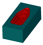 可以使用多个刀具来执行 Z 轴层粗加工。使用较大的刀具粗加工零件的大部分区域后,FeatureCAM 可以自动对零件的未切削区域应用半粗加工路径,而不重新切削之前粗加工的区域。较小的刀具绕零件的壁进行粗加工,其 Z 增量小于之前的刀具,并粗加工较大的刀具不适合切削的区域。