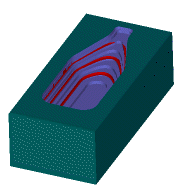 以下示例显示了一个先用 0.75 英寸的端铣刀粗加工再用 0.25 英寸的端铣刀粗加工的瓶子:
