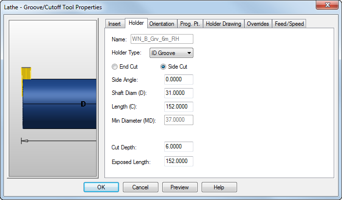 单击刀具预览图像进行平移和缩放。预览的方向由“选项”>“查看”>“机床”页面中的设置确定。在图像上单击鼠标右键可访问关联菜单。