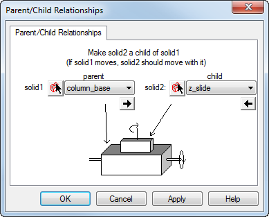 要打开“父/子关系”对话框,请从菜单中选择“机床设计”>“父/子关系”。
