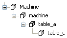 在创建仿真机床的过程中,第一步是指定不同实体之间的关系。在下图中,工作台 C 位于工作台 A 上面。如果工作台 A 移动,则工作台 C 应随之一起移动。这一点可通过指明工作台 A 是工作台 C 的父代来指定。