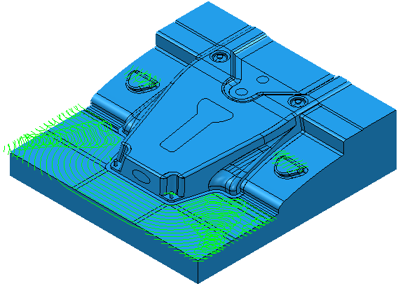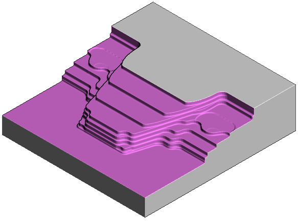 以下示例显示了如何将 Vortex 旋风铣加工与台阶切削结合使用来快速去除材料。