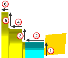 进给方向 — 这是执行操作的刀具进给的方向。对于车削和镗孔特征,请选择“朝向主轴”或“朝向面”。对于面和背面特征,请选择“正”或“负”以沿 X 轴指定方向。对于粗加工、半精加工和精加工操作,请单独设置该选项。