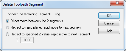 删除刀具路径段时,必须从以下选项中选择如何连接其余段: