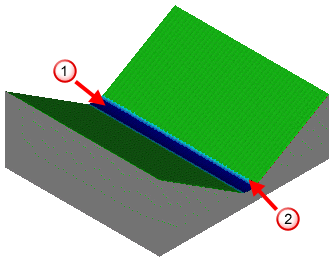 更加仔细地检查波谷,您可以看到波谷底部经过了很大的倒扣。这通过深蓝色表示。浅蓝色区域表示轻微倒扣区域。