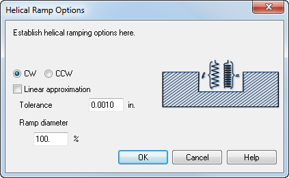 您可以使用“螺旋斜向选项”对话框设置默认铣削特征的螺旋斜向选项。