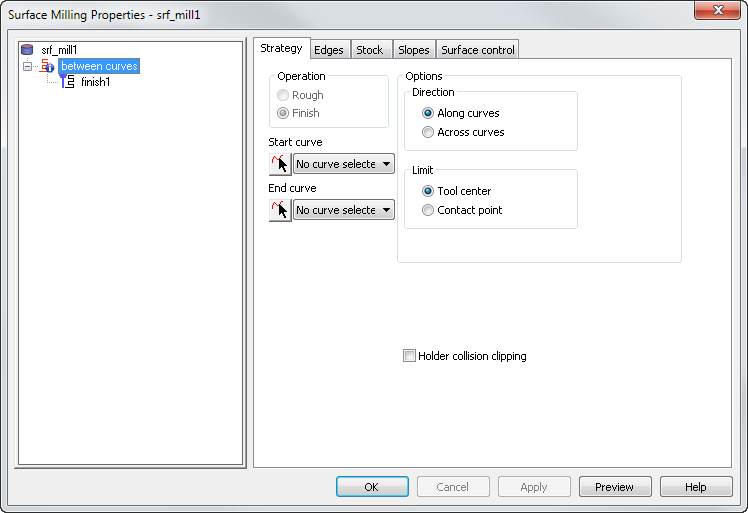 拾取或选择要在它们之间进行加工的“开始曲线”和“结束曲线”。
