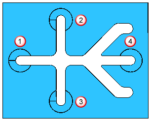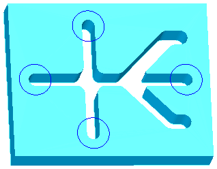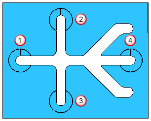 从四个圆创建阴模特征,并且将轮廓策略与直接切入样式配合使用。