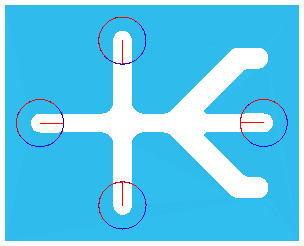由于阴模特征由四个圆组成,因此如果在“加工属性”对话框的“开始”页面上更改默认的切入角,即从 0 更改为 90 度,则会更改四个圆的切入角: