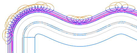 最大角度修正 - 输入光顺轴在方位角方向上可能偏离初始轴的最大角度。仅当非光顺刀具路径按大于此值向内移动小于“光顺距离”时,才会超过最大角度修正角度。在此类区域中,角度的变化可能大于“最大角度修正”,以得到光顺结果。